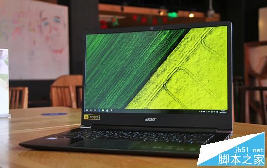 翻开顶盖来看下屏幕部分,它配备了一块14英寸IPS屏,分辨率为目前市面常见的1920×1080。由于窄边框的采用,可以看到宏碁Swift 5的B面非常具有视觉冲击力,同时也将它的整体格调拉高了一个档次。也正得益于此,它的屏占比非常高,从而使得其机身尺寸相比传统同类产品要更小。