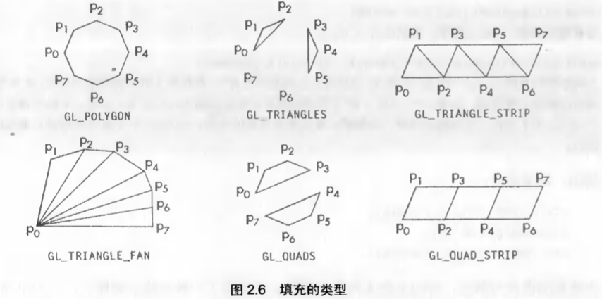 填充图元:具有内部区域的图元。在显示的时候可以以某种颜色或模式进行填充,共有6中填充图元