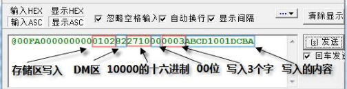 2.D区写数据(向plc D10000 写入ABCD1001DCBA)