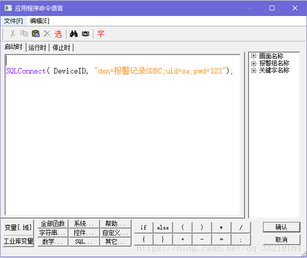 在“应用程序命令语言”中启动时写SQLConnect语句,停止时写SQLDISConnect语句