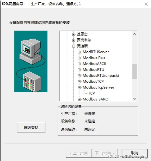 第12步:新建项目点击COM1右边的新建设定TCP参数。在设备驱动中的莫迪康中找到ModbusTCP Server下面的TCP单击下一步