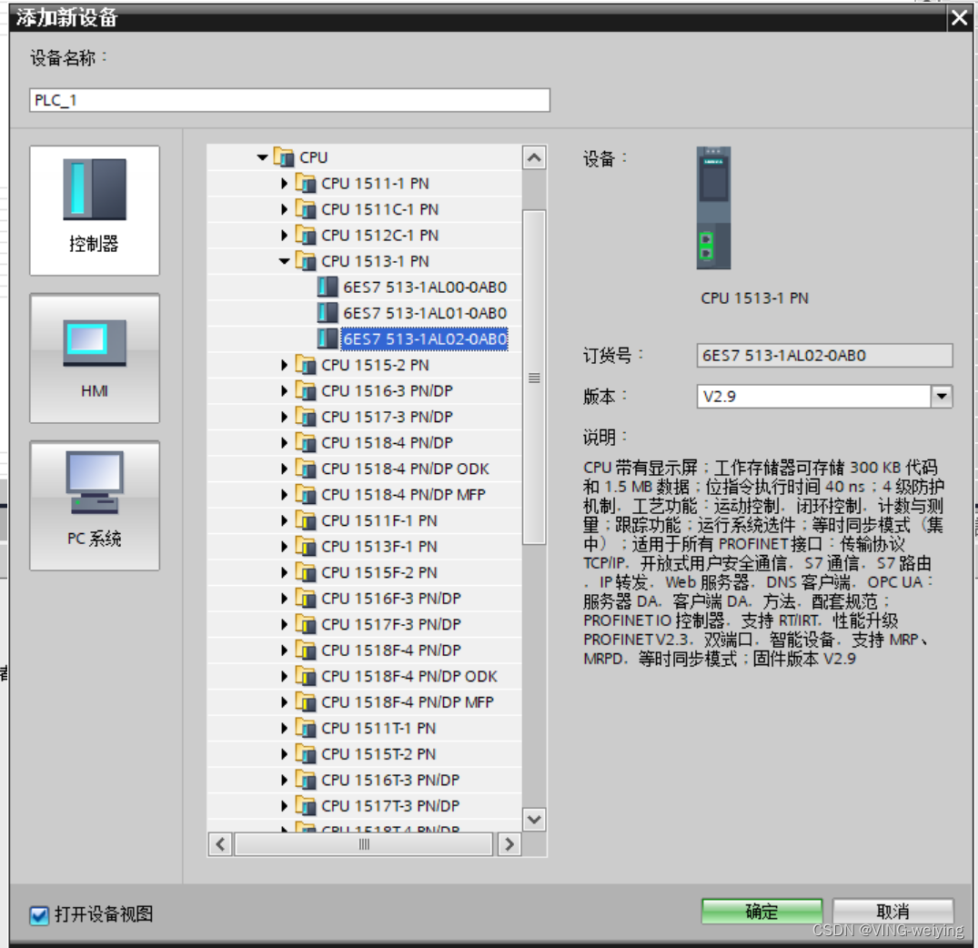 第2步:添加西门子PLC 1513PLC