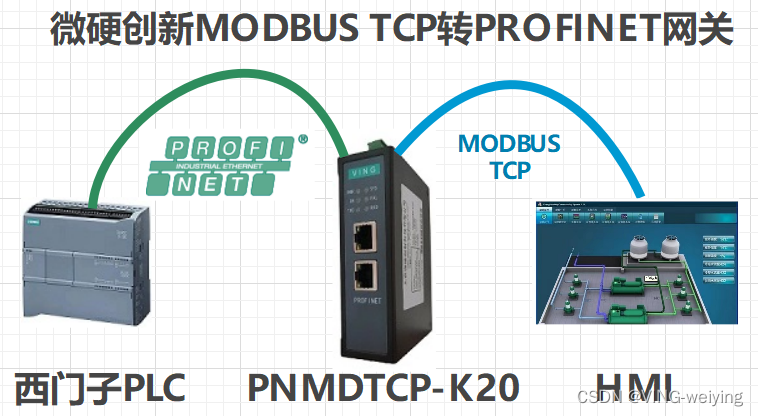 一、本案例是1500PLC通过微硬创新MODBUS TCP 转 PROFINET 网关连接组态王服务器从站快速配置,将 Modbus TCP 设备数据转接入到西门子 PROFINET 网络中