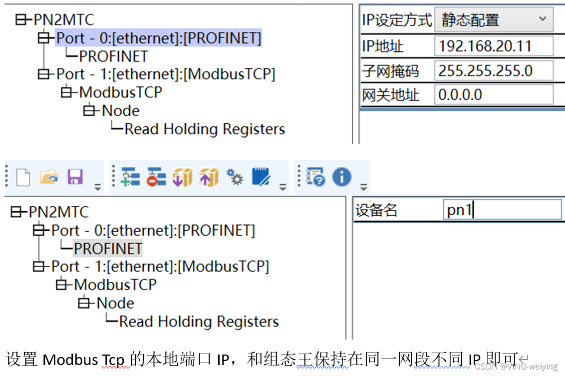三、MODBUS TCP 转 PROFINET 网关从站快速配置方法步骤: