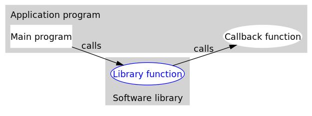 从上面的例子可以看出,回调机制提供了非常大的灵活性。请注意,从现在开始,我们把图中的库函数改称为