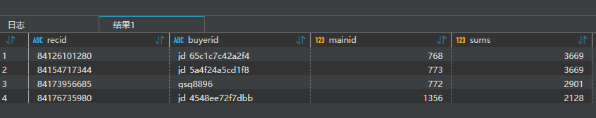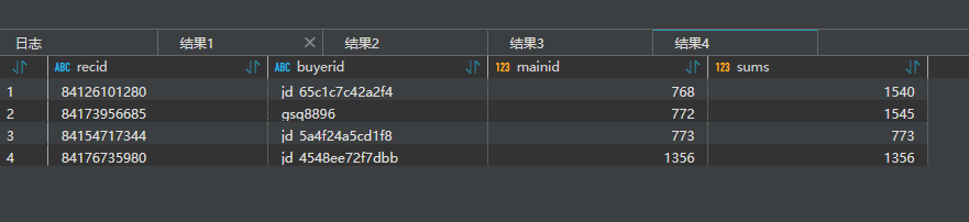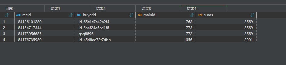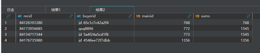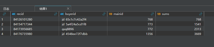 2.mainid 数值在 当前行的 值 , mainid+4 范围内的和