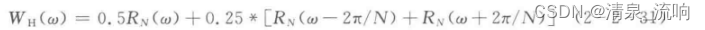 式中:rN(n)就是式(2-2-27)的矩形窗函数。由式(2-2-23)wH(n)的离散时间傅里叶变换