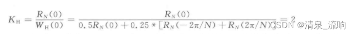 将上式中w=2π/N代人到式(2-2-29)中,RN(土2π/N)的值为0。所以得到KH=2,KH表示为汉宁窗的修正系数。