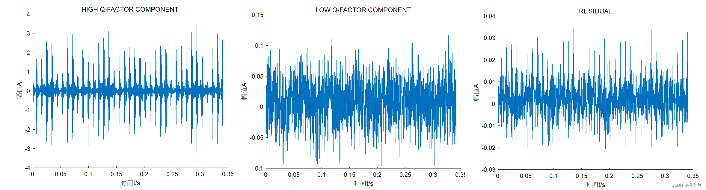 共振稀疏分解是振动信号中脉冲成分提取的方法。与基于频率的信号处理方法不同,该方法同时参考频率和带宽两个因素,从而在分离信号不同成分的过程中能够很好处理信号不同成分的重叠问题