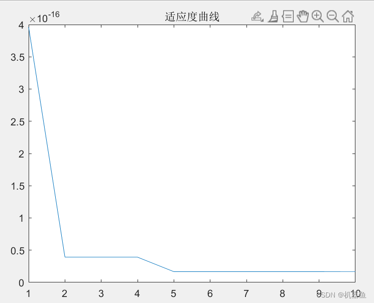 由于我们是最小化适应度函数,所以适应度曲线是一条下降的曲线,如图