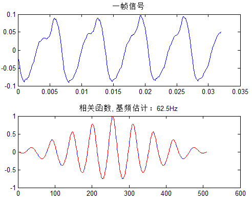 取一帧信号为例,整个说话段要配合有话帧检测(VAD技术,这里不提了)自相关法估计基频code: