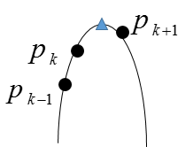 其实利用LPC得出的包络,找到四个峰值,就已经完成了共振峰的估计。为了更精确地利用LPC求取共振峰有,两种常用思路:抛物线内插法、求根法,这里以内插法为例。其实就是一个插值的思路,如图