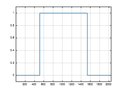 其中n=-N2,-N2+1, ⋯,N2-1 ,N 表示窗函数的总长度,M 表示窗函数的有效长度。假设N=2048,M=1024 ,则矩形窗的形状如下图所示。