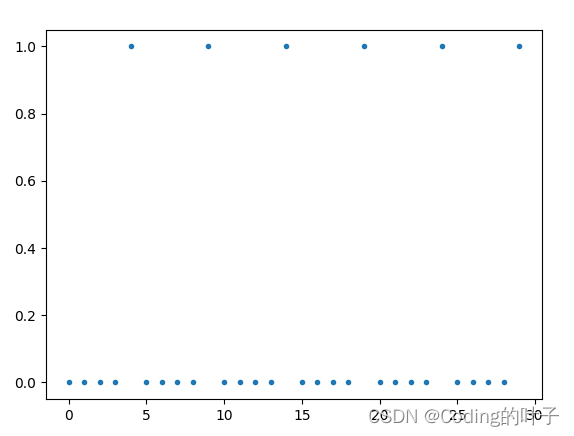 x = np.array([ 0, 1, 0, 0, 0, 0, 1, 0, 0, 0, 0, 1, 0, 0, 0, 0, 1, 0, 0, 0, 0, 1, 0, 0, 0, 0, 1, 0, 0, 0, 0, 1])