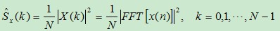 其中,FFT[x(n)]为对序列x(n)的Fourier变换,由于FFT[x(n)]的周期为N,求得的功率谱估计以N为周期。