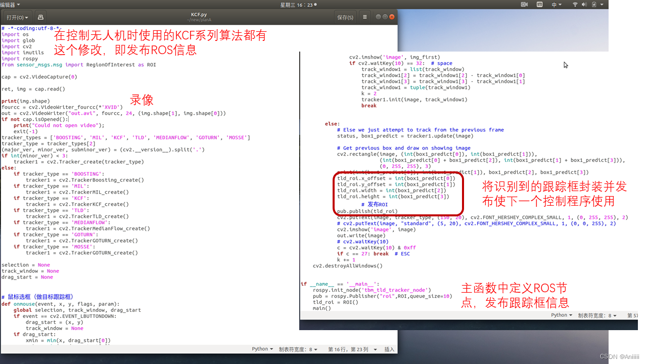 在用这个程序将无人机飞起来之后,打开摄像头,运行KCF系列程序