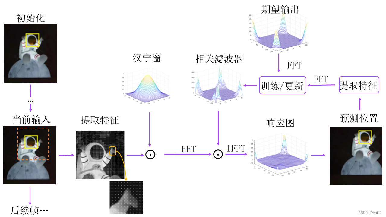 原理在网上都是百度到,这是我自己画的图,是找到KCF的MATLAB代码一步一步运行程序跑出来的,可以看清楚每一步操作对图片做了什么工作,你也可以这么做,有利于对原理的理解
