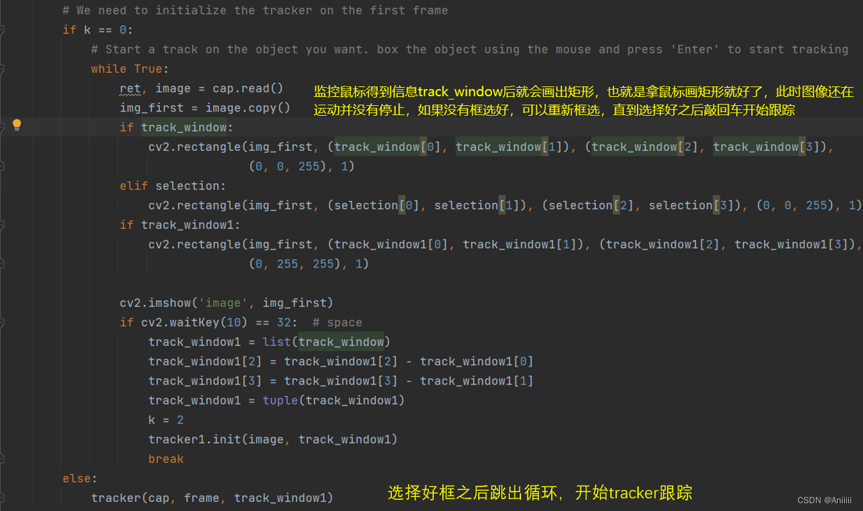 调用tracker函数就和DSST那个代码一样了,所以这个脚本主要功能是能 **动态框选**