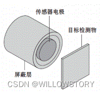 每个电容式传感器的感应元件是由一个传感器电极和一个屏蔽层电极组成的。这两个同轴金属电极共同组成一个电容器。