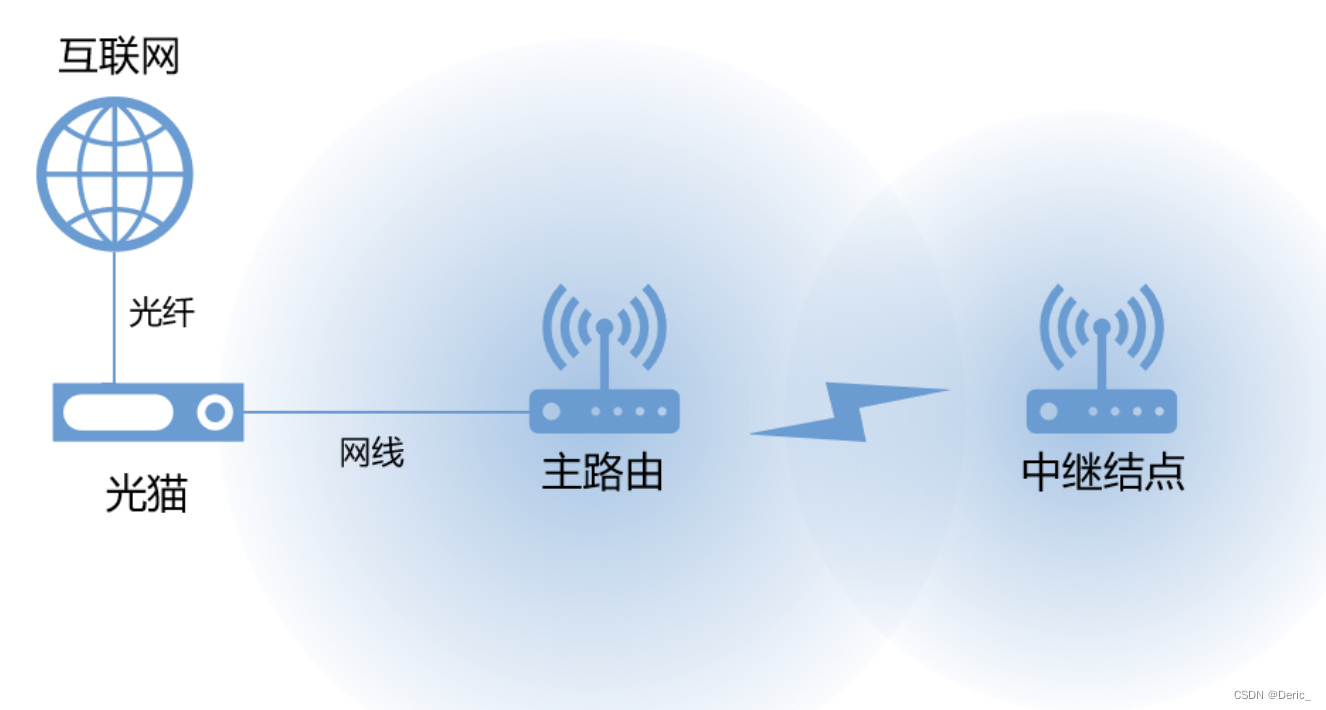跟AP模式不同,在中继模式下的路由器和上级路由器之间并没有网线连接,只是单纯地接收上级路由器的无线信号,进行放大后再发出去,不做任何处理。