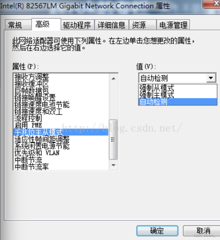 如果千兆网卡还是不能自适应到1Gbps,需要在以下位置强制千兆模式:我的电脑---击右键:设备管理器---网络适配器---在相应网卡上双击---高级---千兆位主从模式(或其他千兆项目)---选择“强制主模式”再查看即为1Gbps。