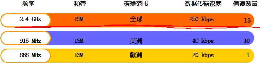 在2.4GHz频段,共有16个信道,信道通信速率为250kbps;