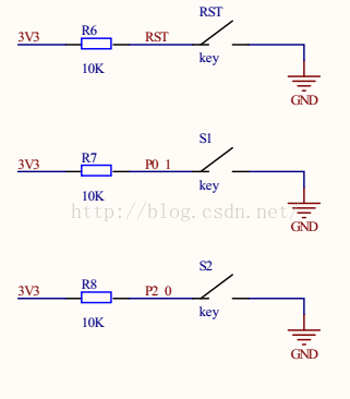 没按下按键,上拉为高电平,按下按键则接地为低电平