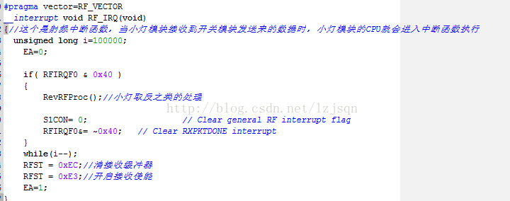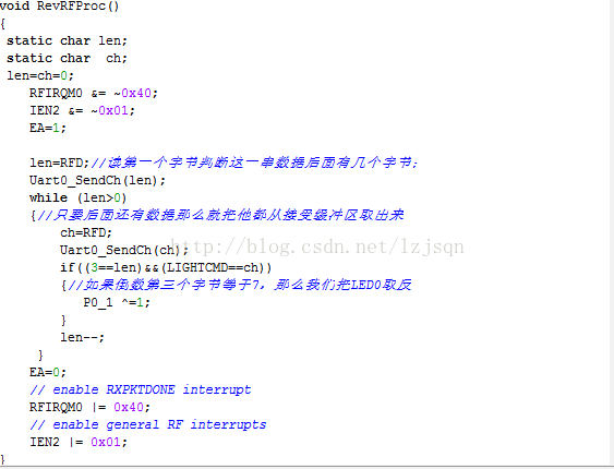 {//这个是射频中断函数,当小灯模块接收到开关模块发送来的数据时,小灯模块的CPU就会进入中断函数执行