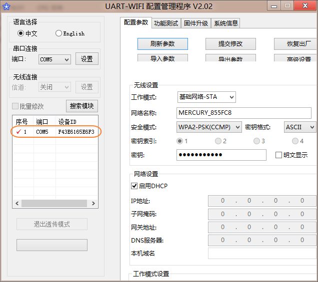 - 方法一:使用UART-WIFI配置管理程序进行管理