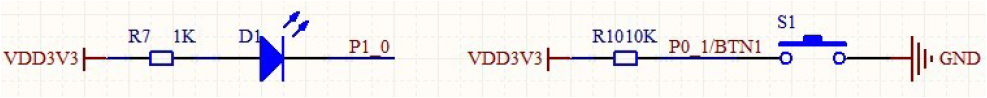 电路依然没变,若要使用CC2530的外部中断需要使用P0IEN、PICTL、P0IFG、INE1寄存器。