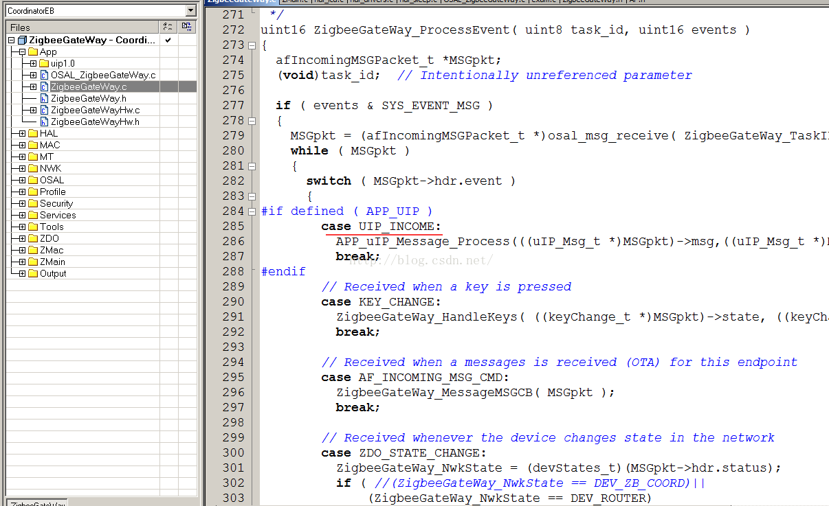其中结构体uIP_Msg->hdr.event 的值对应的就是case里面的条件语句判断值