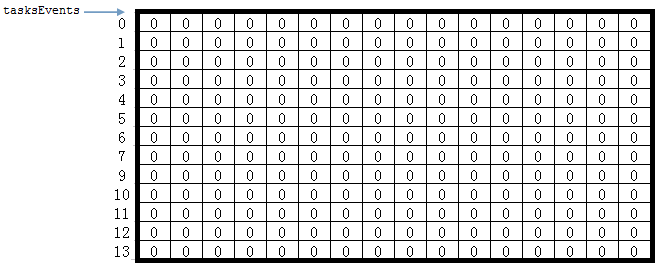 * uint16 *tasksEvents; 从此定义可以看出taskEvents指向一张列数为16的二维表,一个任务中可以有多个事件