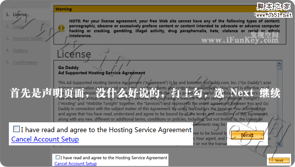 点击 Setup Account 之后会到下图这样一个声明页面,打勾,Next,继续下一步