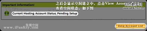 点击上图那个 View Account List 就会看到下图的页面,当 Status 变为 Actice ,免费空间就算建立完毕,痛快的使用吧