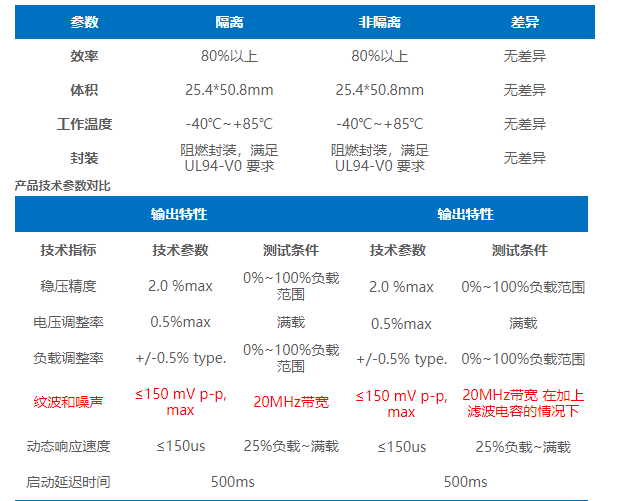 DC-DC隔离电源模块的输出带载范围小于非隔离电源模块带载范围。