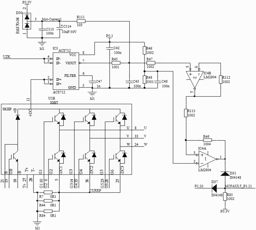 4、霍尔电流传感器ACS712/CH701在电动方向盘电机驱动控制器的应用