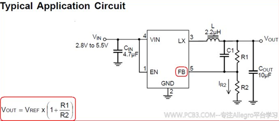 图2左下角为分压电路计算公式,能很容易根据反馈电压计算出输出电压。