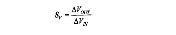LDO的线性调整率(Sv)是_个直流变化量,它是输出电压VoLrr随输入电压V琳的变化的变化率,表达式为: