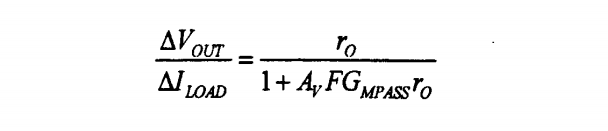 由上式可以看出,如果要降低LDO的负载调整率,减小负载电流的变化对输出电压的影响,可以提高环路的增益,但是高环路增益的电路的稳定性补偿问题非常困难,故在设计时需折衷考虑。