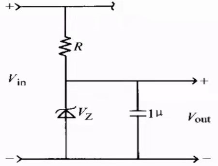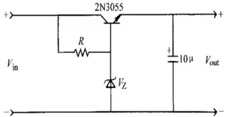 比如上图,它是一个基本的低压降稳压器,通过电阻R进行分压,下半部分为稳压电路,具有稳压管元件,它的稳压工作区间决定了输出稳压的范围,虽然是一个简单的电路,但是它可以实现小电流(百mA级别),小动态范围内的稳压作用。