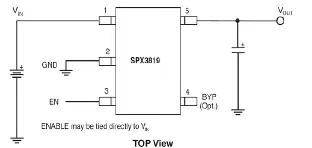 比如型号spx3819(某一常用LDO电路芯片)的电路图如下图所示,可以看到它的外围电路器件非常简单。