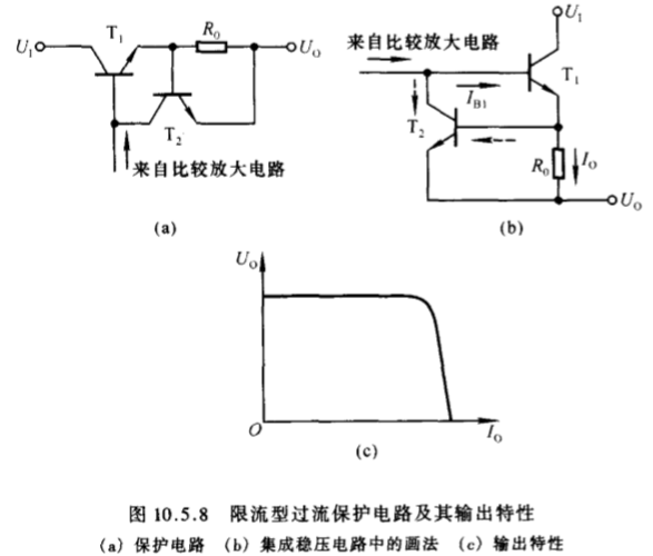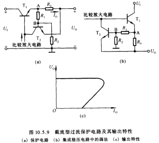 ①、过流保护:凡是在过流时使调整管发射极电流限制在某一数值的电路,称为限流型过流保护电路。凡是在过流时使调整管发射极电流迅速减小到较小数值的电路,称为截流型过流保护电路。