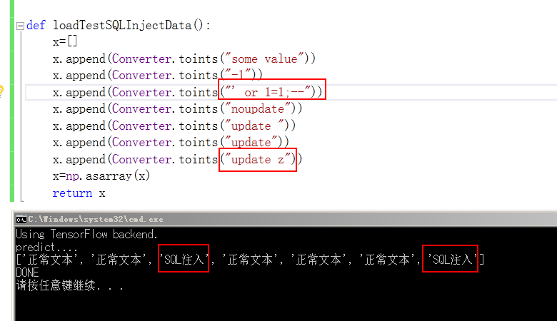 以上就是笨笨翅膀最近收集整理的关于使用keras做SQL注入攻击的判断(实例讲解)的全部内容,更多相关使用keras做SQL注入攻击内容请搜索靠谱客的其他文章。