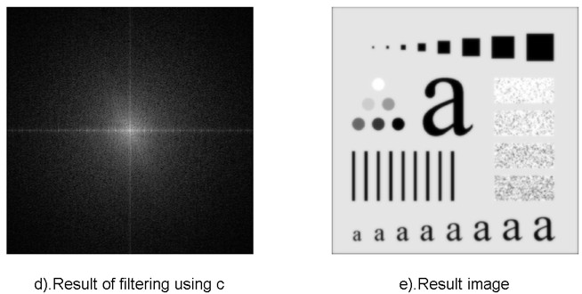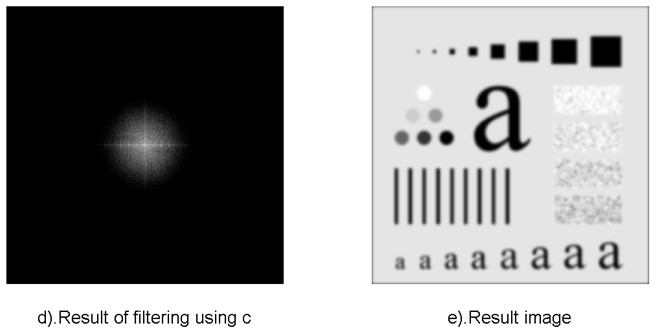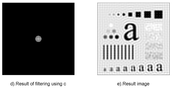 使用低通滤波器所得到的结果如下所示。低通滤波器滤除了高频成分,所以使得图像模糊。由于理想低通滤波器的过度特性过于急峻,所以会产生了振铃现象。