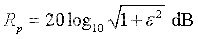 由 ωs ≤ |ω| ≤ π 定义的阻带中, 最大波纹由1/A表示; 单位为dB的最小阻带衰减为: