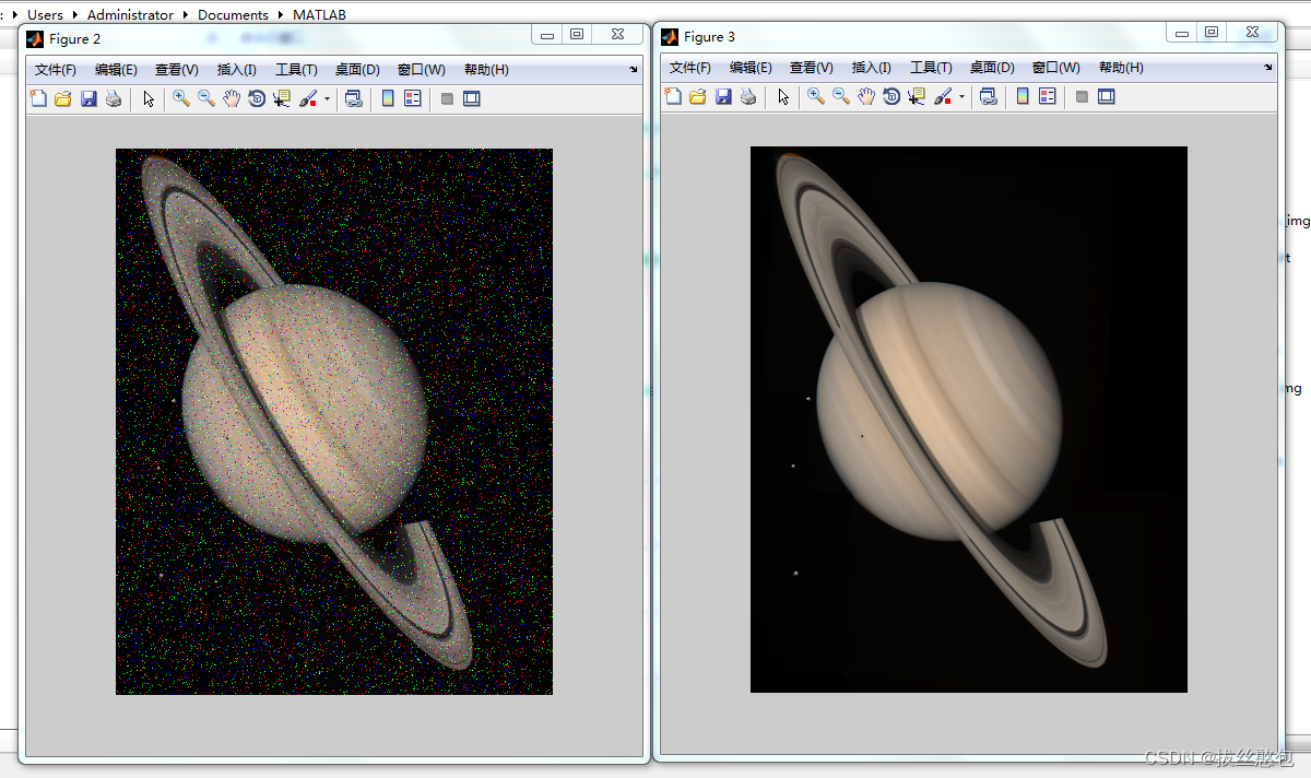 - 针对两幅含有噪声的图像采用中值滤波方法进行平滑处理