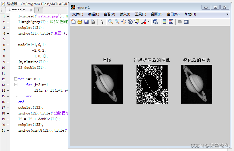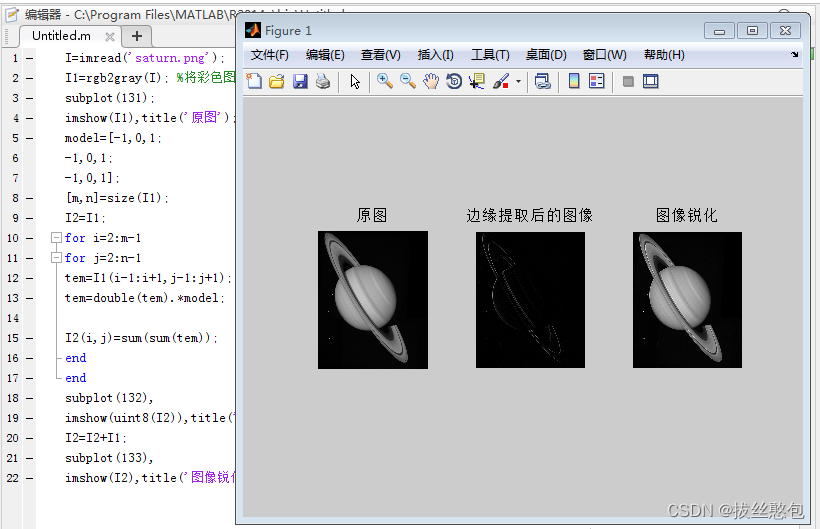 subplot(133),imshow(t),title(‘锐化后的图像’);