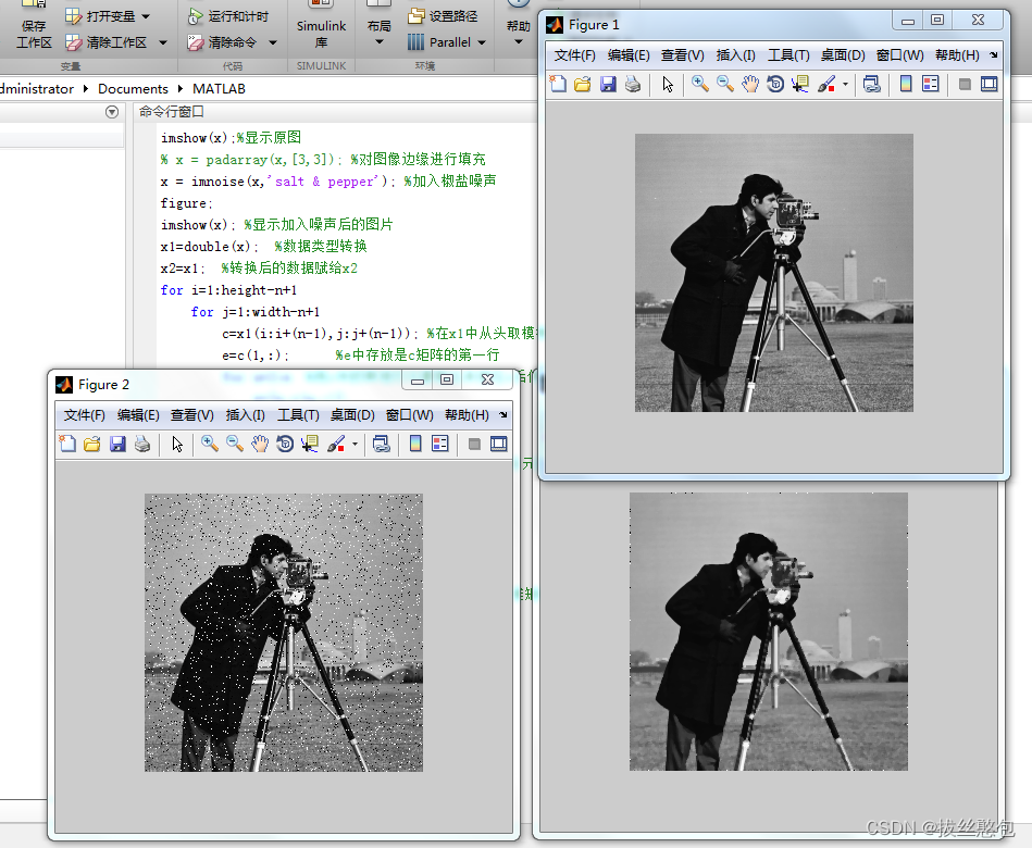 同样对于cameraman图像,采用中值滤波方法进行平滑: