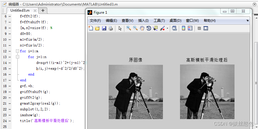 读入cameraman图像,对其采用高斯模板进行平滑操作: