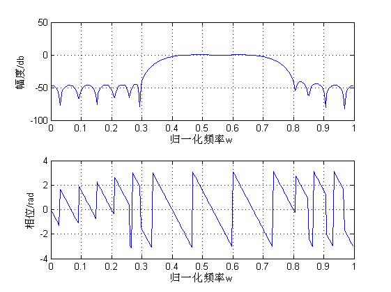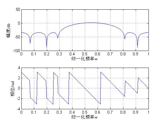 如果直接用freqz(h2,1,256);得幅频特性和相频特性曲线: